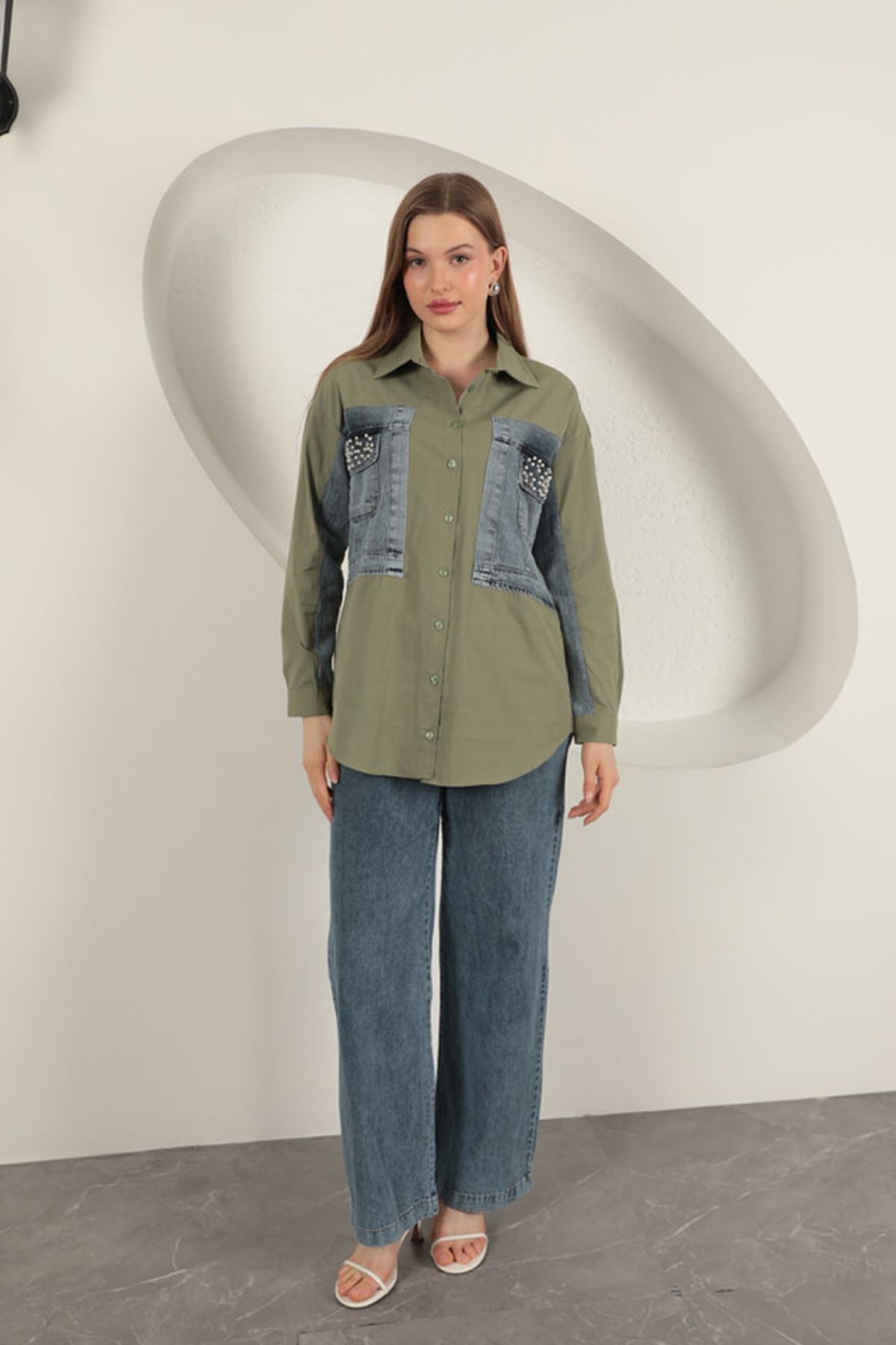 KKT Poplin Fabric Denim Garnish Khaki Women's Shirt - Klagenfurt