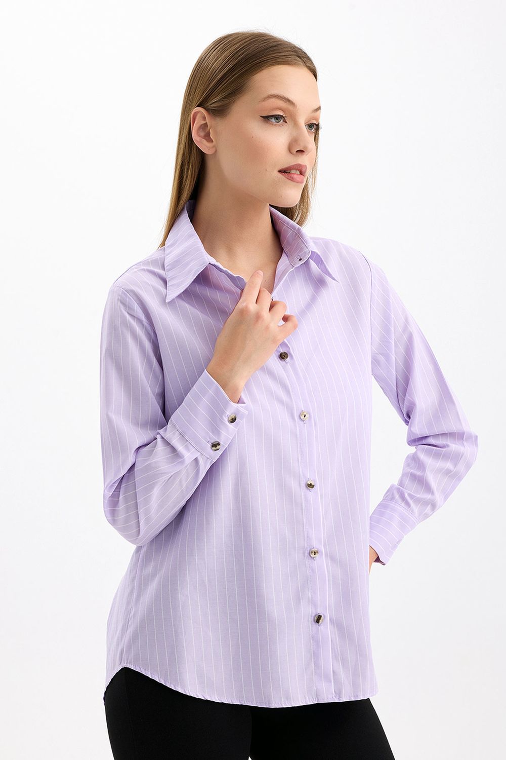 SNS Sense Lıla Comfortable Fit Long Sleeve Women's Striped Shirt - Delaware