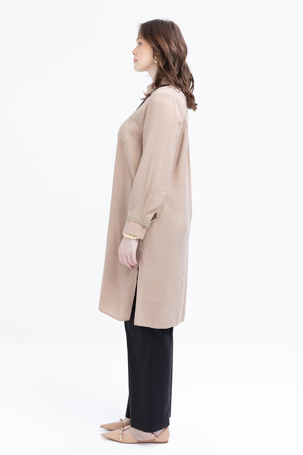 TLD Women Allday Beige Beige-Striped Lace-Detailed Plus Size Modal Shirt - Slatina