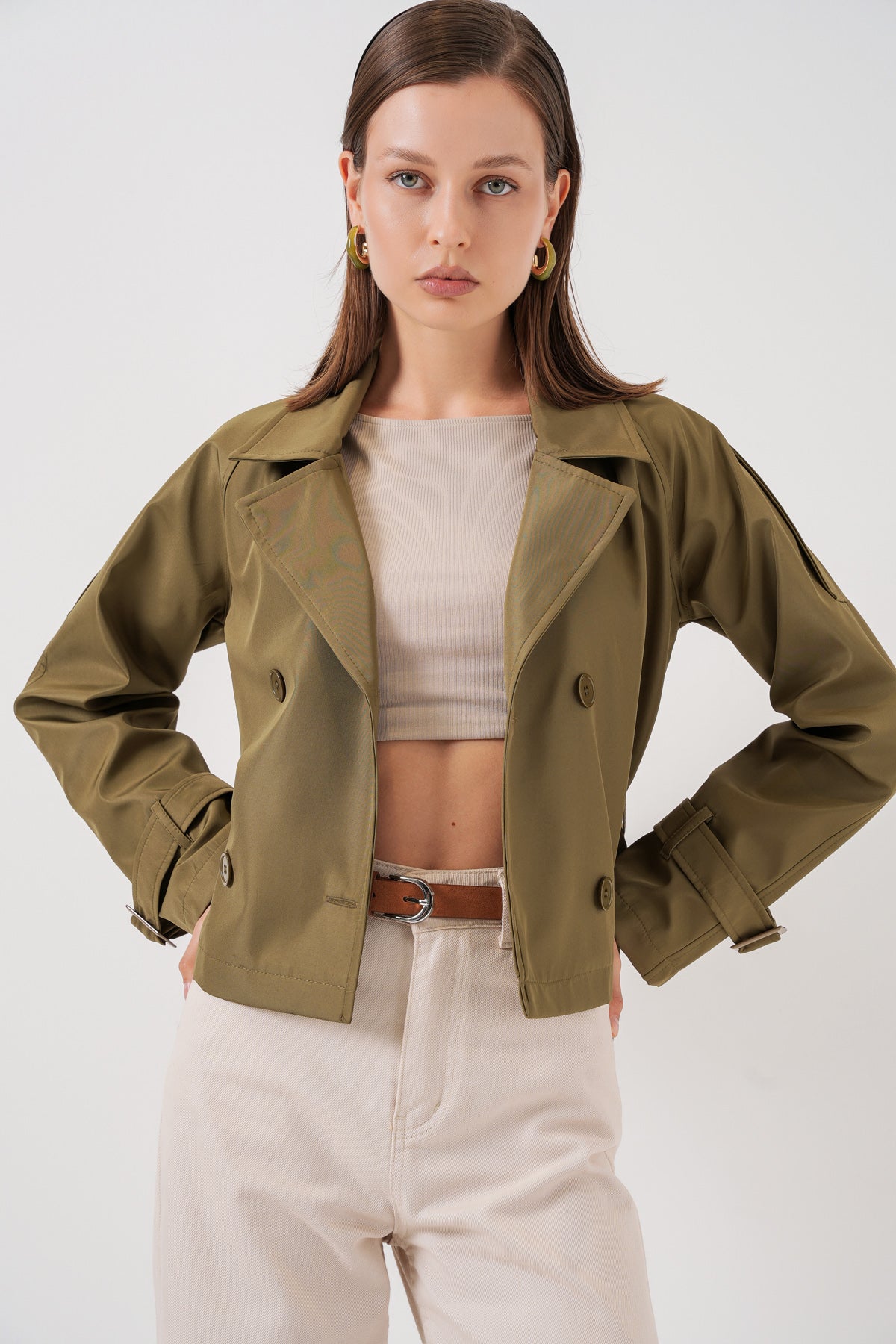 BGD Women Women's Belted Short Trench Coat 5970 - Khaki - Ramapo