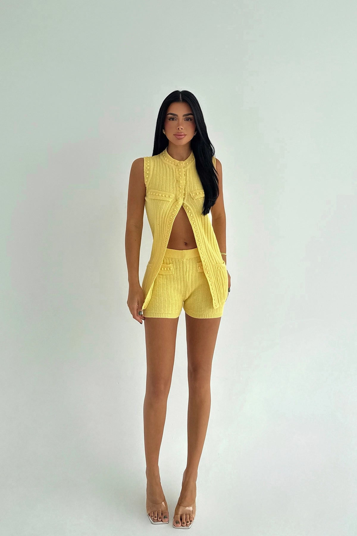 EYY Women Yellow Alfie Mini Shorts Knit Set - Tarrasa