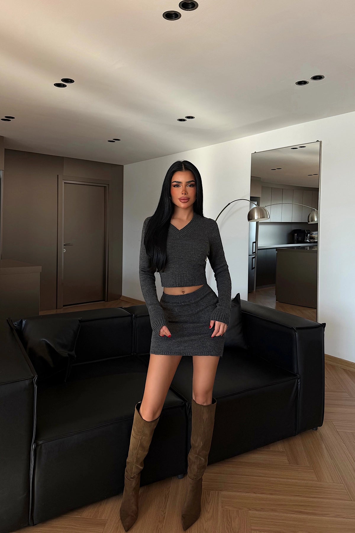 EYY Women Anthracite Knitted Skirt Set - Nashua