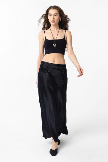 ANT Antioch Black Belted Satin Long Women's Skirt - Ragusa