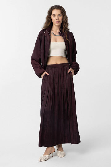 ANT Antioch Bordeaux Long Flowy Pleated Women's Skirt - Pearl City