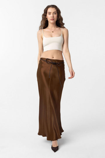 ANT Antioch Coffee Belted Satin Long Women's Skirt - Acilia