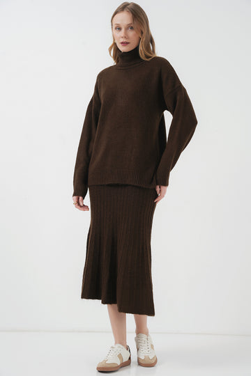 BGD Women Kazakh Skirt Knit Two-Piece Set - Brown - Grevenbroich