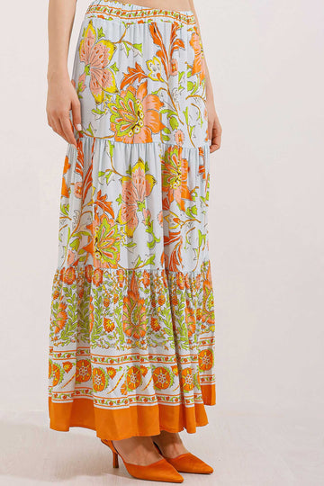 BGD Women Patterned Long Skirt - Orange - Avondale