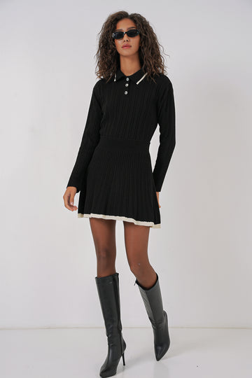 BGD Women Women's Polo Neck Sweater Skirt Knitwear Set - Black - Quimper