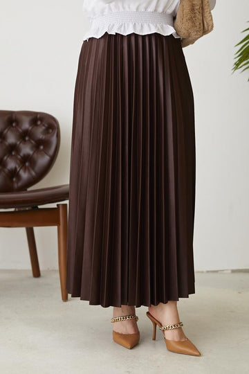 BNG Women Brown Elastic Waist Pleated Skirt - Clermont