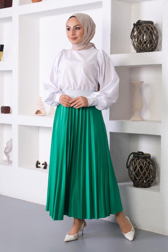 BNG Women Elastic Waist Pleated Hijab Skirt Emerald - Clermont