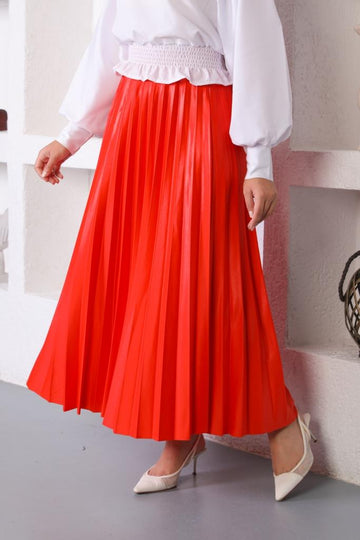 BNG Women Elastic Waist Pleated Hijab Skirt Pomegranate Flower - Clermont