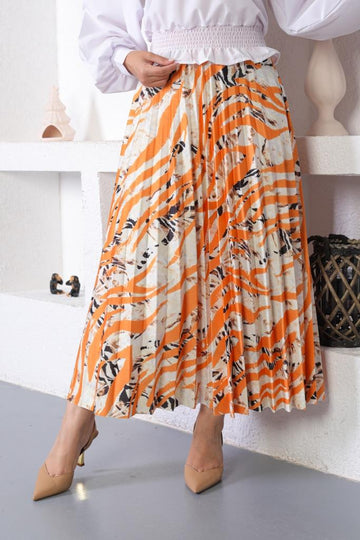 BNG Women Patterned Hijab Pleated Skirt Orange - Clermont