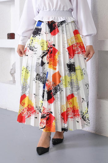 BNG Women Patterned Hijab Pleated Skirt Yellow - Clermont