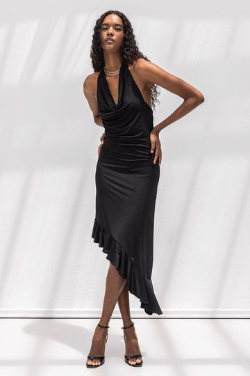 BSL Women Cowl Neck Asymmetrical Skirt Detailed Midi Dress - Umán