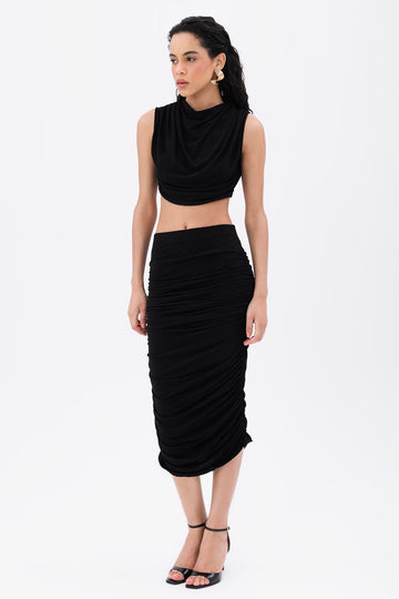 BSL Women Draped Midi Pencil Skirt - Redlands