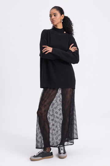 BSL Women Transparent Lace Midi Skirt - Evesham