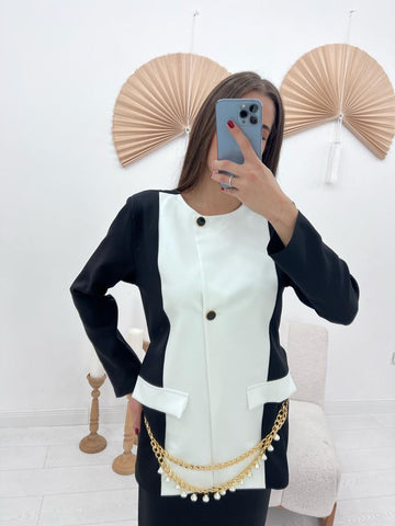 ELS Atlas Fabric Jacket and Skirt Set with Bead Embellishments - Black - Roanoke