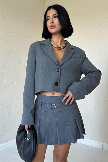 ELS Bomber Jacket and Pleated Skirt Set - Gray - Ocotlán
