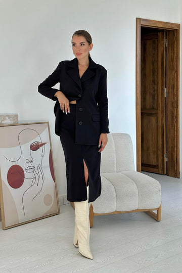 ELS Buttoned Jacket and Skirt Set - Black - Wuppertal