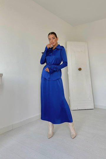 ELS Embroidered Shirt and Skirt Set - Blue - Chilpancingo