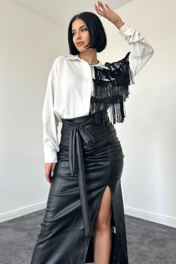 ELS Front Ruched Strap Skirt - Black - Chelles
