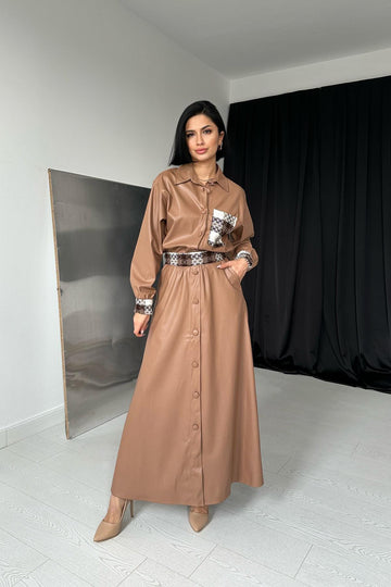 ELS Garnished Leather Skirt Suit - Tan - Barcelona