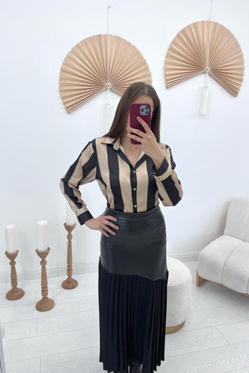 ELS High-Waisted Leather Trimmed Skirt - Black - Babylon