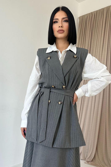 ELS Long Striped Vest and Skirt Set - Gray - Ipswich