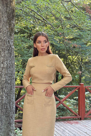 ELS Pocket Chain Blouse and Skirt Set - Camel - Melun