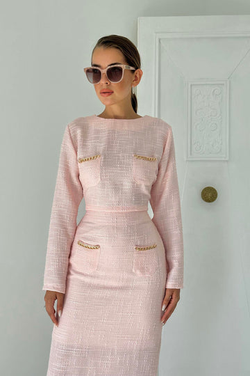 ELS Pocket Chain Blouse and Skirt Set - Powder - Montclair