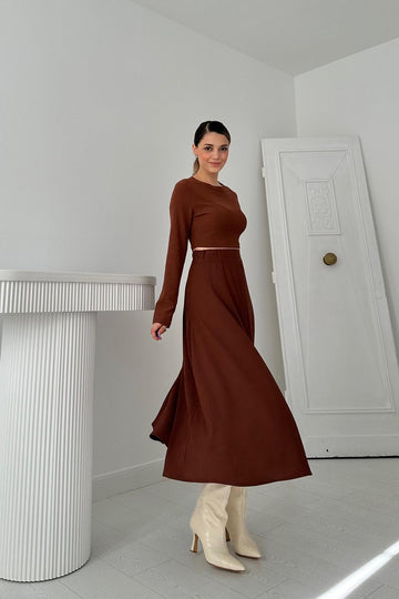 ELS Ribbed Blouse & Skirt Set - Brown - Northampton