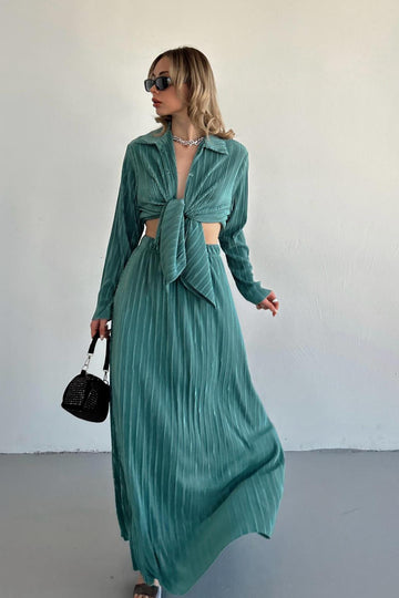 ELS Ribbed Shirt and Long Skirt Set - Mint - Monopoli