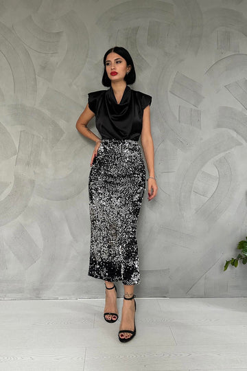 ELS Shiny Skirt with Sequins - Silver - Mountain View