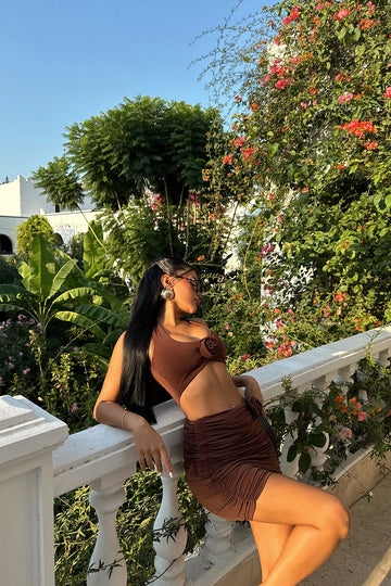 EYY Women Brown Rose Detail Skirt Suit - San Buenaventura