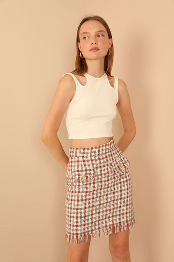 KKT Channel Woven Fabric Tight Fit Mini Skirt With Pocket - Light Brown - Orpington