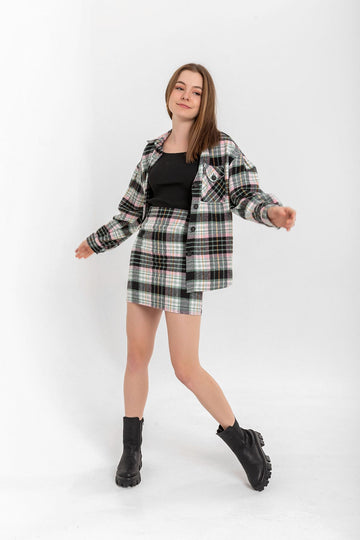 KKT Lumberjack Fabric Tight Fit Striped Mini Skirt - Mint - Jackson