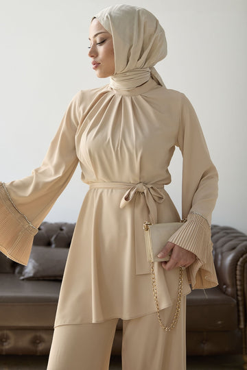 Arm Padded Belted Two Piece Set