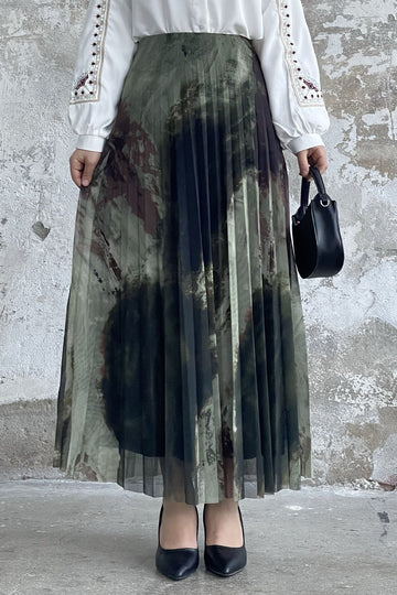 MDS Women Batik Pattern Lined Tulle Skirt - Khaki - Narbonne