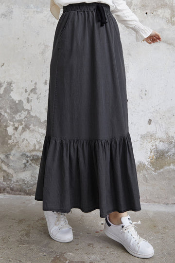 MDS Women Darlin Ruffle Denim Skirt - Gray - Martinez