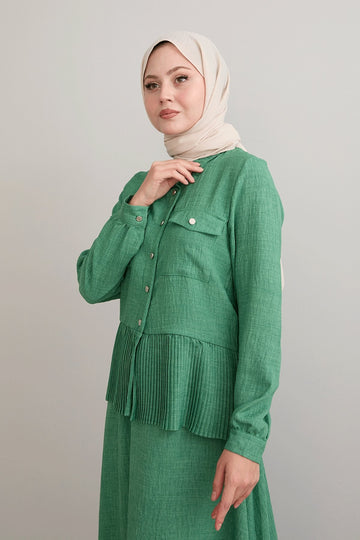 MDS Women Green Linen Suit with a Pleated Skirt - Salisbury