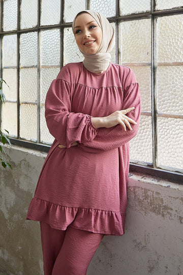 MDS Women Lively Ruffle Skirt Set - Rose Pink - Créteil