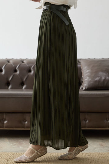 MDS Women Ruched Chiffon Skirt with Belt - Khaki - Dachau