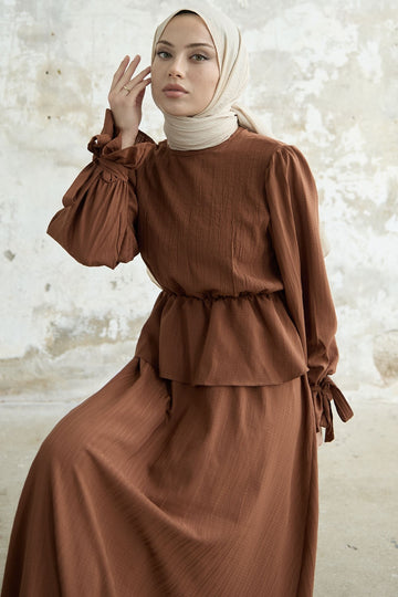 MDS Women Ruffle Detail Top and Skirt Set - Brown - Nampa