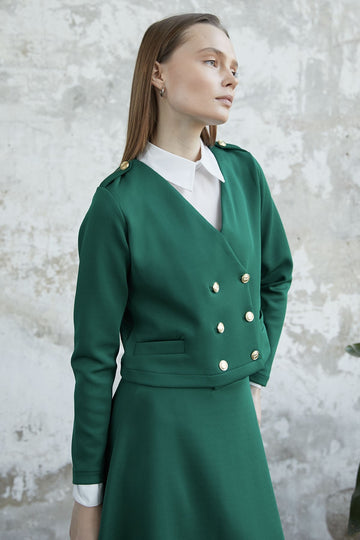 MDS Women Skirted Buttoned Jacket Scuba Suit - Green - Columbia