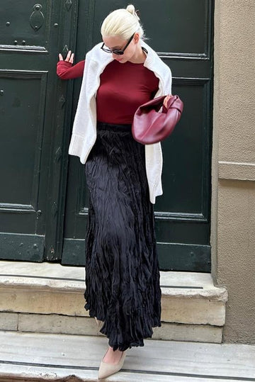 MDX Black Wrinkled Pattern Midi Length Women's Skirt MG2266 - North Little Rock