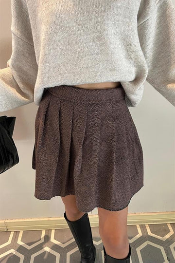 MDX Brown Plaid Pattern Women's Pleated Skirt MG2248 - Amherst