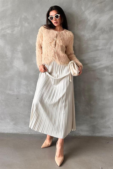 MDX Ecru Pleated Women's Skirt MG2318 - Angra do Heroísmo