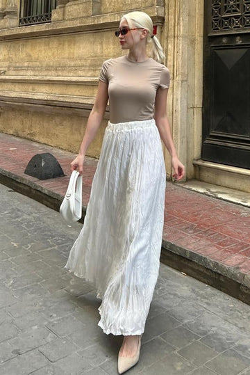 MDX Ecru Wrinkled Pattern Midi Length Women's Skirt MG2266 - Fribourg