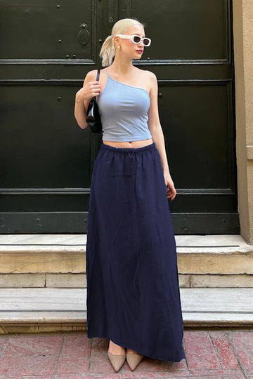 MDX Navy Blue Elastic Waist Long Women's Skirt MG1979 - Alessandria
