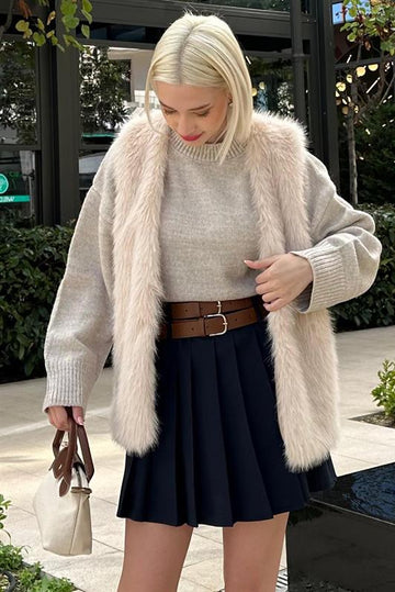 MDX Navy Blue Pleated Two-Belted Women's Skirt MG2246 - Brentwood